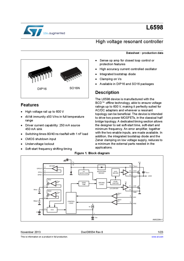 L6598D013TR High Voltage Controller 16-Pin SO N T/R