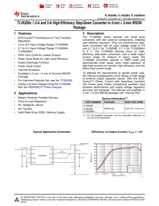 TLV62084DSGR Conv DC-DC Single Step Down 2.7V 5.5V 8-Pin WSON T/R