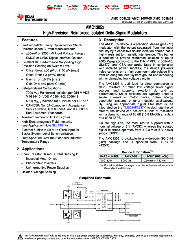 AMC1305M25DWR ADC Single Delta-Sigma 20Msps 16-bit Serial 16-Pin SOIC T/R