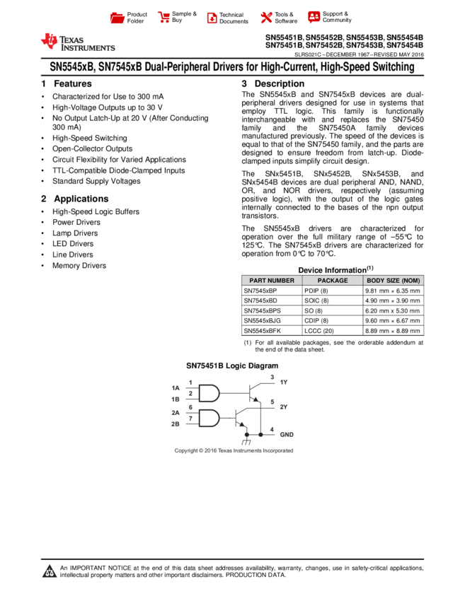 SN55453BJG Pref DRVR Dual 4.5V to 5.5V 1050mW 8-Pin CDIP Tube