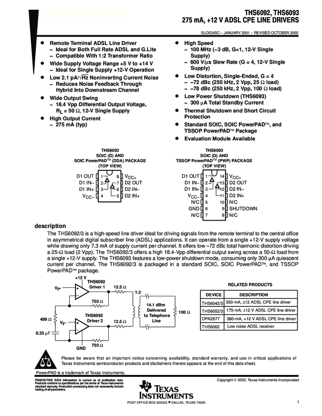THS6093IPWPR ADSL Driver Dual 14-Pin HTSSOP EP T/R