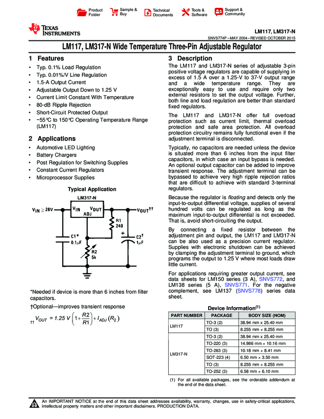 LM317S/NOPB Standard Regulator Pos 1.2V to 37V 1A 4-Pin(3+Tab) SOT-223 T/R
