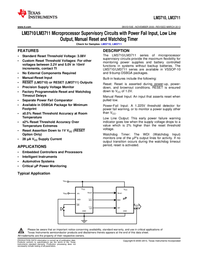 LM3710YQMM-232/NOPB Processor Supervisor 2.32V 1V to 5.5V 10-Pin MSOP T/R