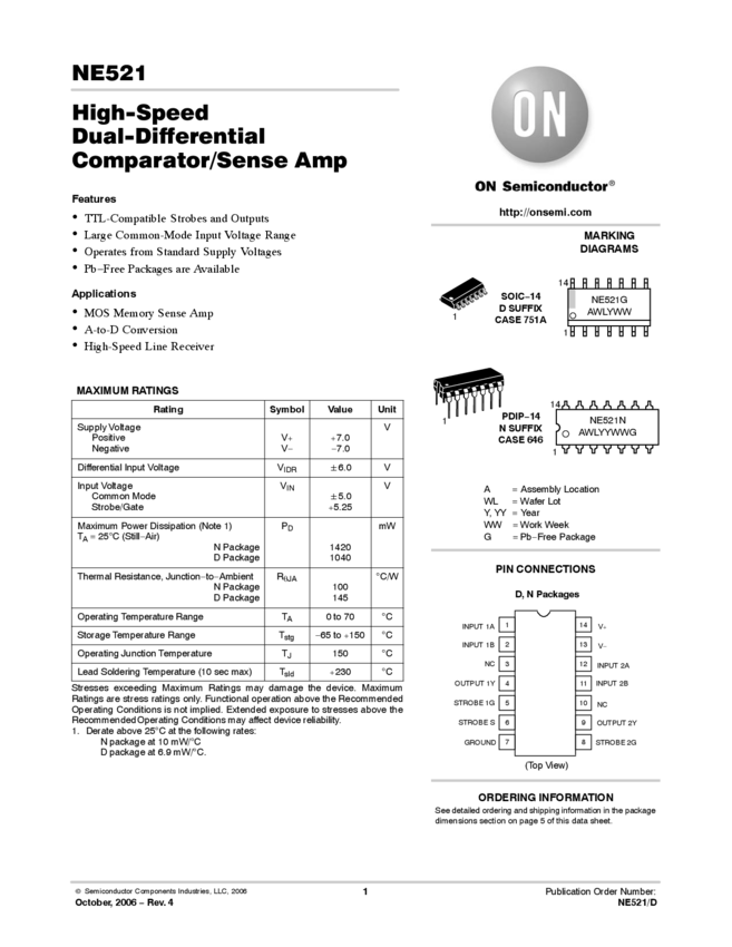 NE521DR2G Comparator Dual ±5.25V 14-Pin SOIC T/R