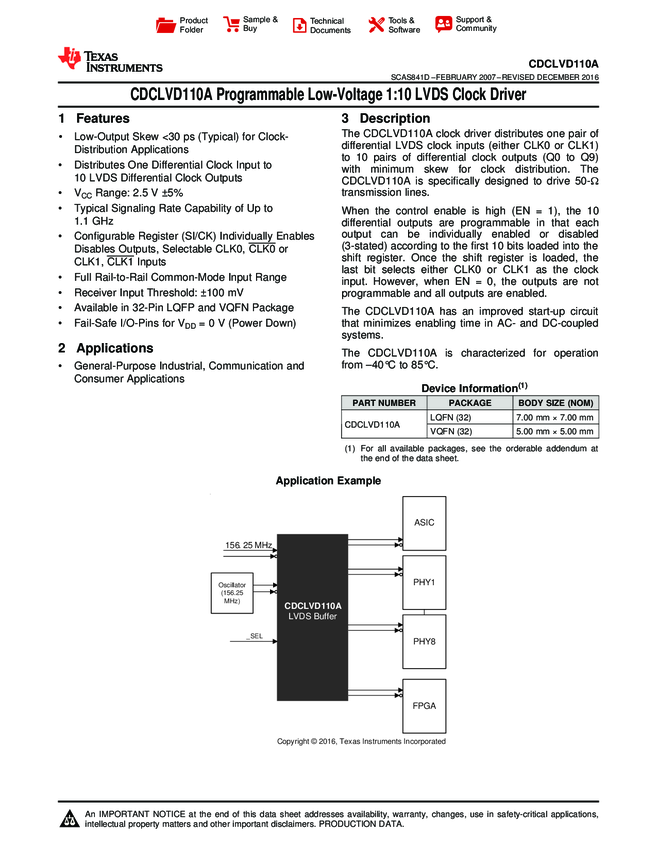 CDCLVD110AVFR, CDCLVD110ARHBT