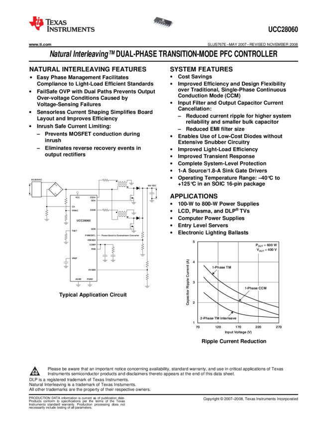 UCC28060DR Power Factor Correction CONTRLR 0.1mA 45KHz 16-Pin SOIC T/R