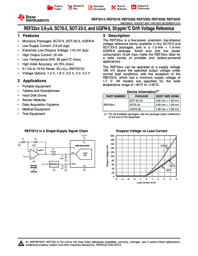 REF3312AIDBZT, REF3333AIDBZT, REF3333AIDCKT, REF3333AIDCKR