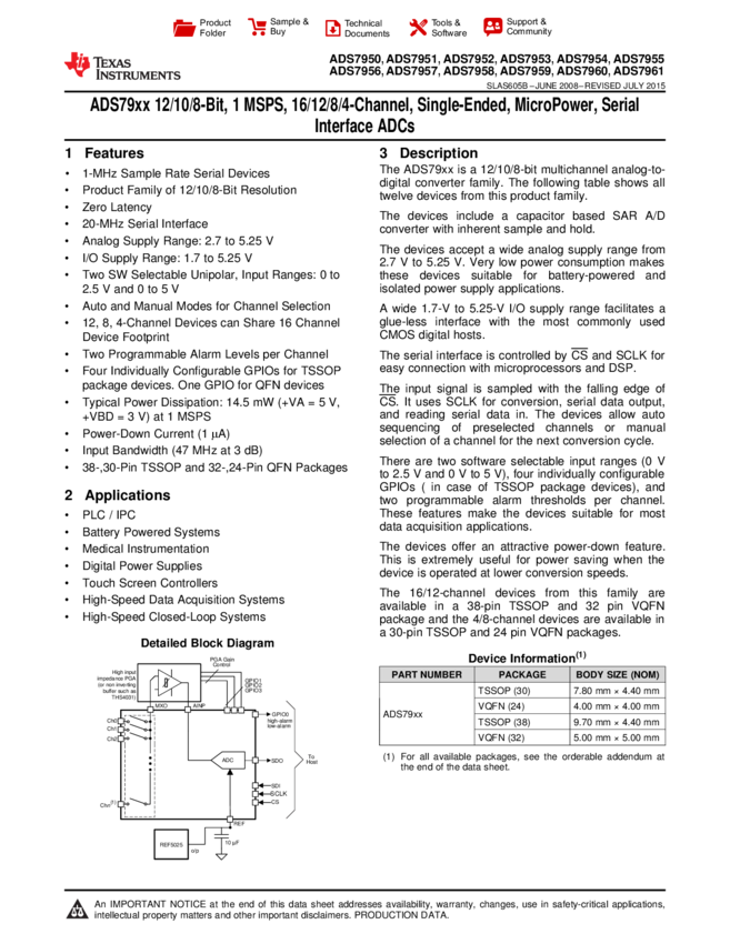 ADS7955SRGER ADC Single SAR 1Msps 10-bit Serial 24-Pin VQFN EP T/R
