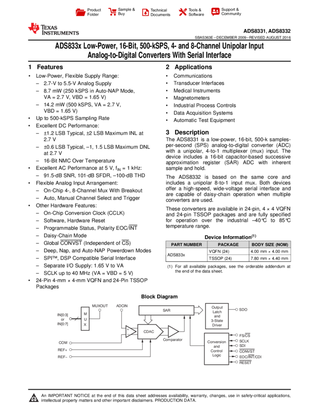 ADS8331IBRGET, ADS8331IRGET, ADS8332IRGER, ADS8332IRGET