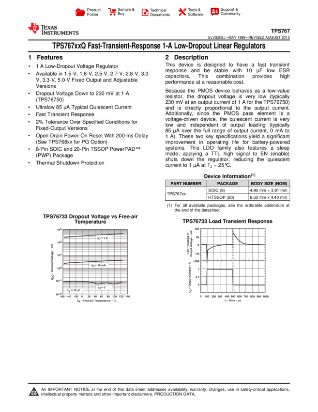 TPS76701QDR LDO Regulator Pos 1.5V to 5.5V 1A 8-Pin SOIC T/R