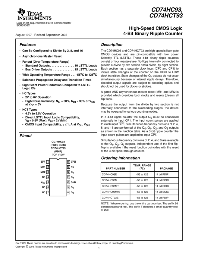 CD74HC93M, CD74HCT93E, CD74HC93M96