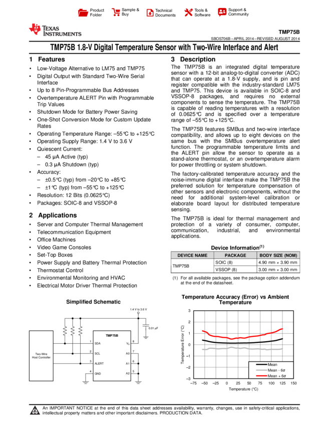 TMP75BID Temp Sensor Digital Serial (2-Wire, I2C) 8-Pin SOIC Tube