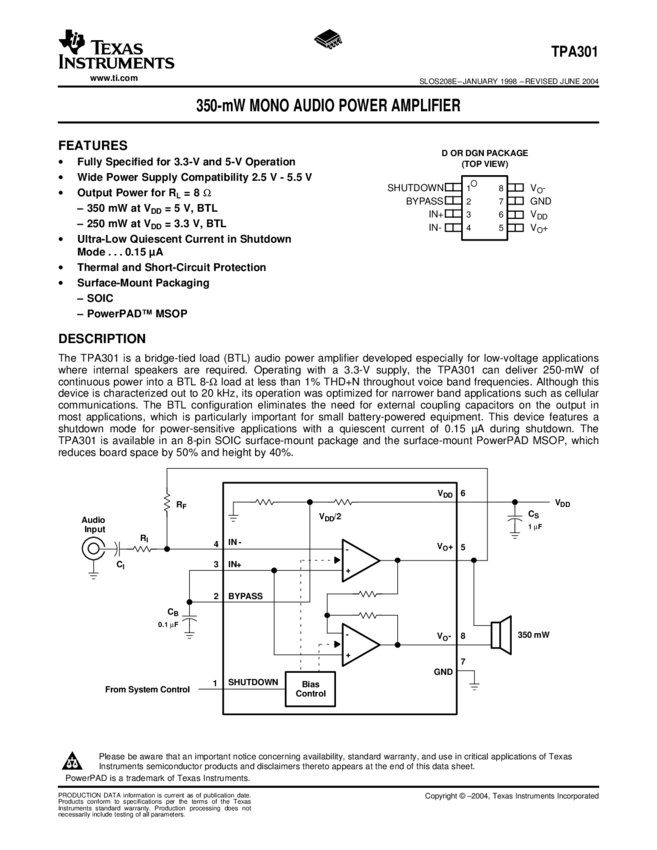 TPA301DGN, TPA301DGNR, TPA301DR