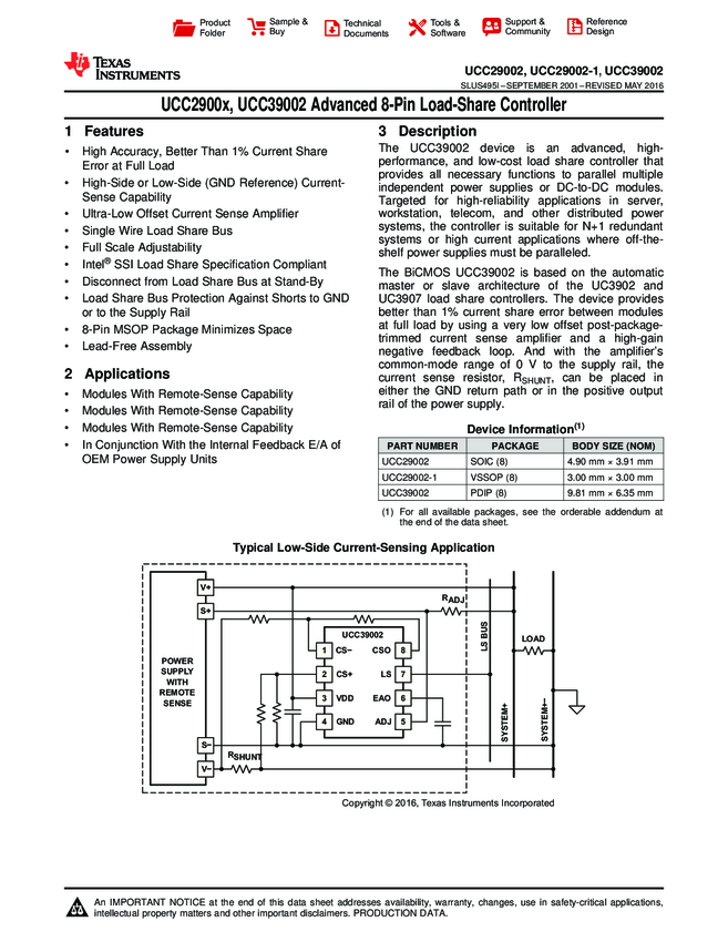 UCC39002DGKR Load Share Controller 8-Pin VSSOP T/R
