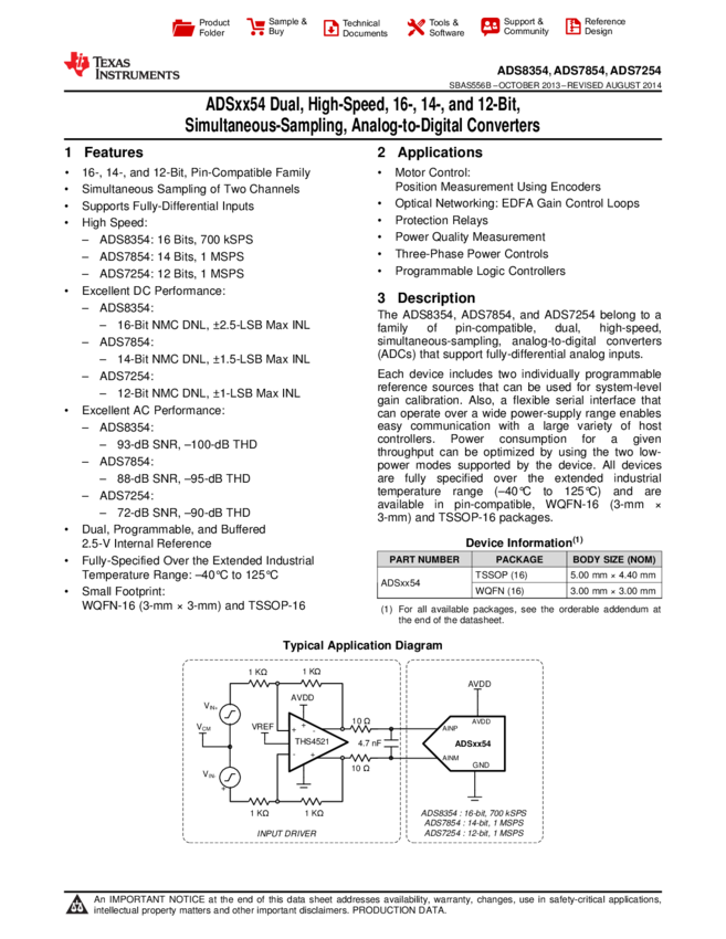 ADS8354IRTET ADC Dual SAR 700ksps 16-bit Serial 16-Pin WQFN EP T/R
