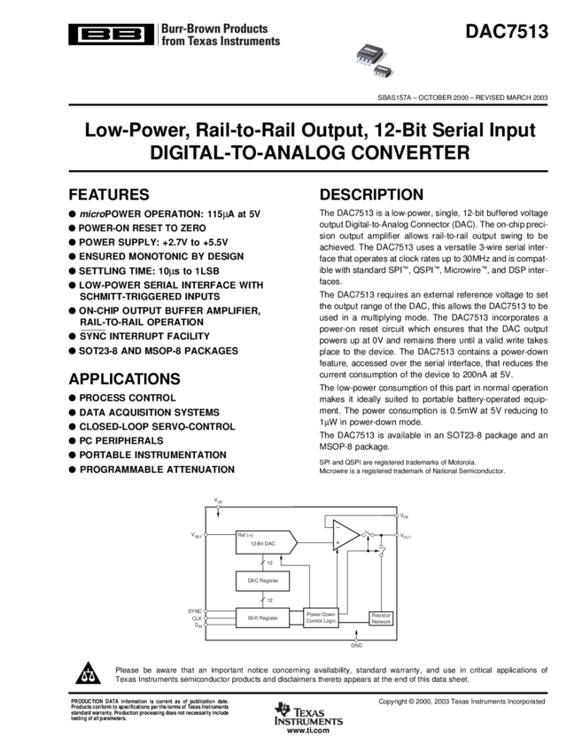 DAC7513E/250 DAC 1-CH Resistor-String 12-bit 8-Pin VSSOP T/R