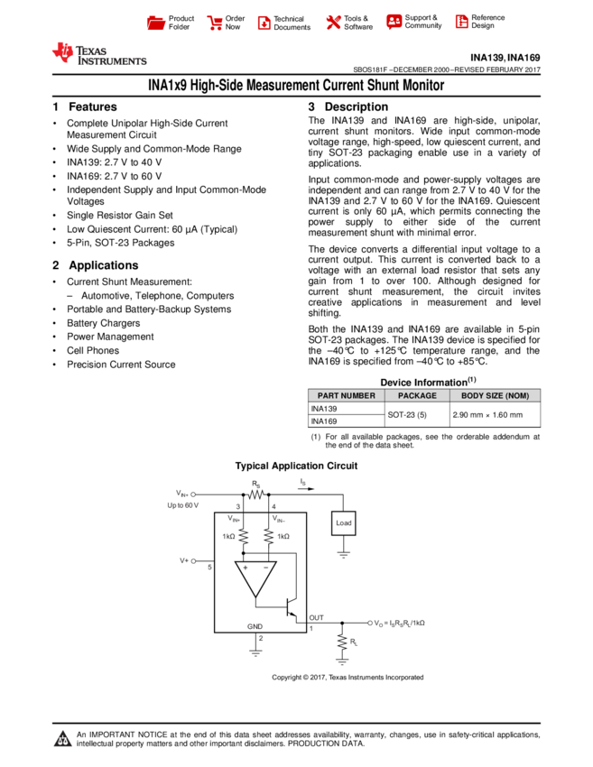 INA139NA/3K SP Amp Current Shunt Monitor Single 40V 5-Pin SOT-23 T/R