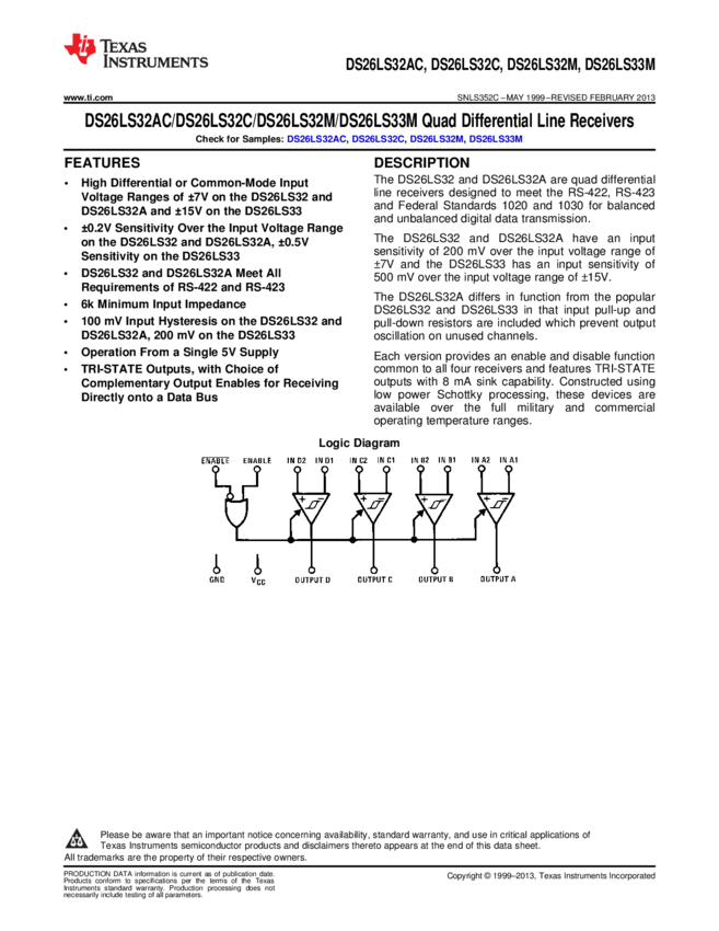 DS26LS32CMX/NOPB Quad Receiver RS-422/RS-423 16-Pin SOIC N T/R