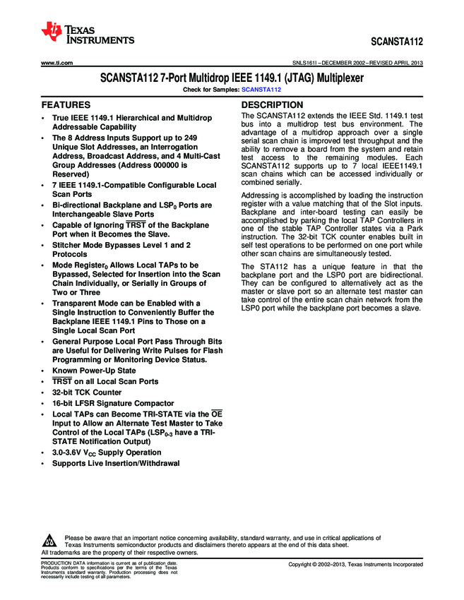 SCANSTA112SMX/NOPB Multidrop Multiplexer 100-Pin F-BGA T/R