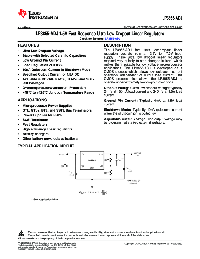 LP3855EMPX-ADJ/NOPB LDO Regulator Pos 1.5A 5-Pin(4+Tab) SOT-223 T/R