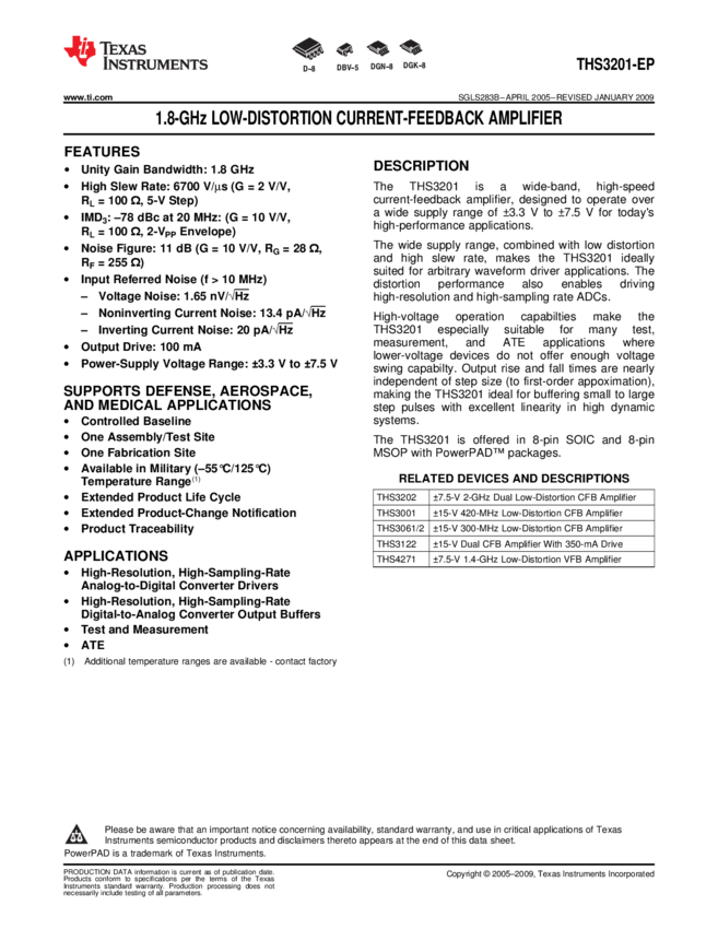 THS3201MDGNREP OP Amp Single Current Fdbk ±7.5V/15V 8-Pin HTSSOP EP T/R