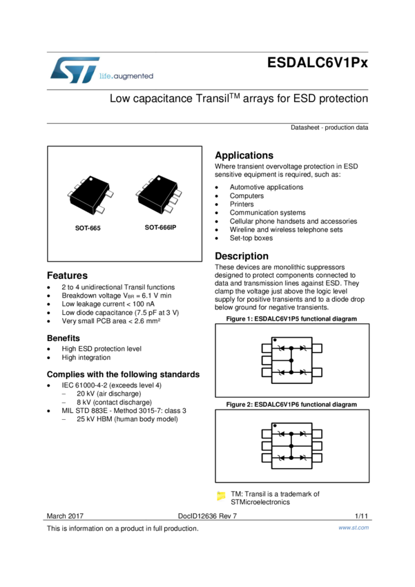 ESDALC6V1P6 ESD Suppressor TVS ±15KV 6-Pin SOT-666IP T/R
