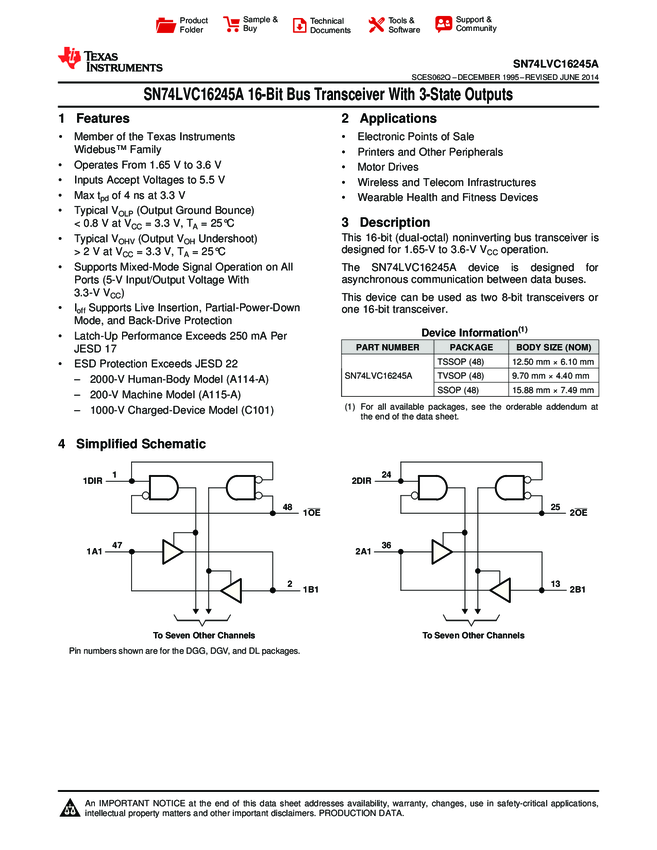 SN74LVC16245AZRDR Bus XCVR Dual 16-CH 3-ST 54-Pin BGA MICROSTAR JUNIOR T/R
