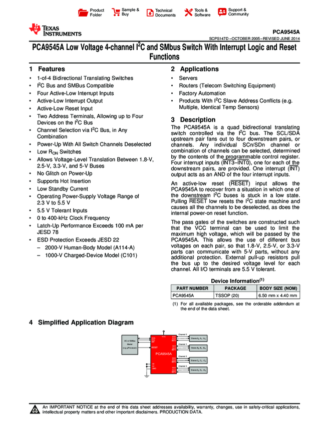 PCA9545ARGYR I2C Multiplexer 1-Element 4-IN 20-Pin VQFN EP T/R