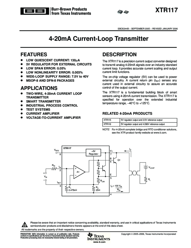 XTR117AIDRBT Current-Loop Transmitter 8-Pin VSON EP T/R