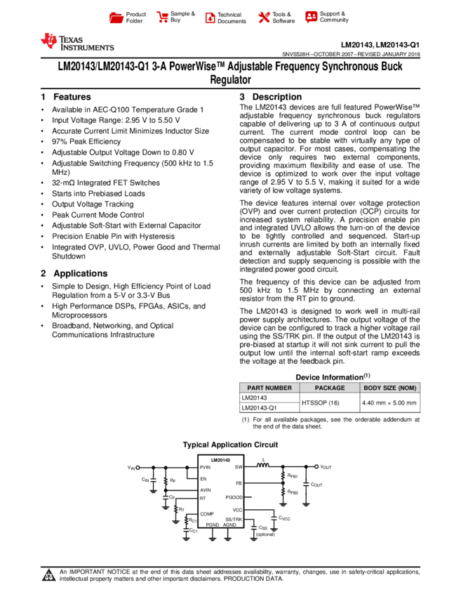LM20143MHX/NOPB Conv DC-DC Single Step Down 2.95V to 5.5V 16-Pin TSSOP EP T/R