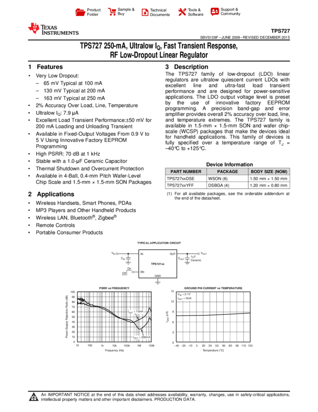 TPS72733DSET, TPS72715DSET, TPS72728YFFT, TPS72718DSET, TPS72728DSER