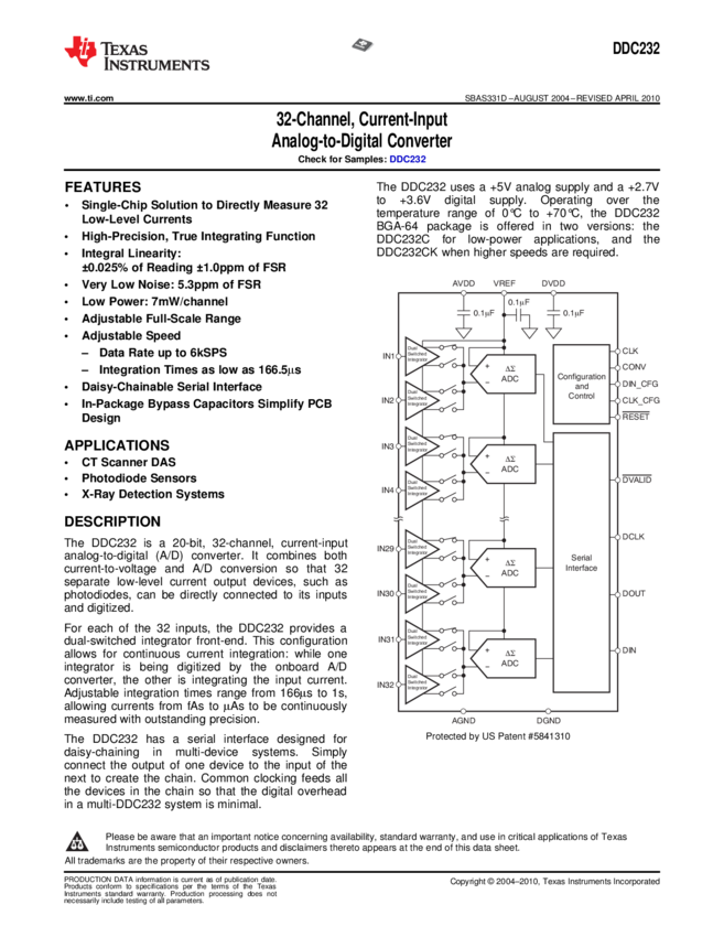 DDC232CKZXGT ADC 32 Delta-Sigma 3ksps 20-bit Serial 64-Pin NFBGA T/R