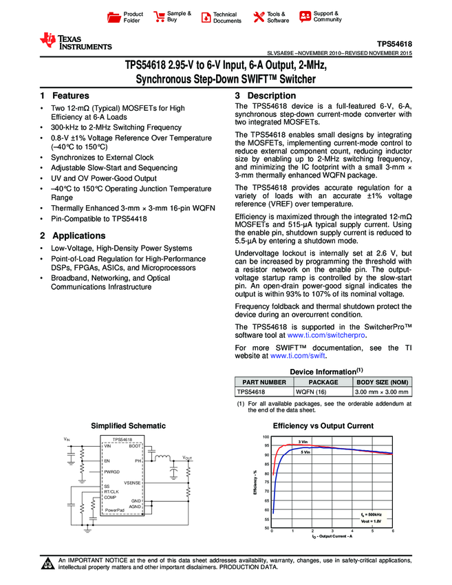 TPS54618RTET Conv DC-DC Single Step Down 2.95V to 6V 16-Pin WQFN EP T/R