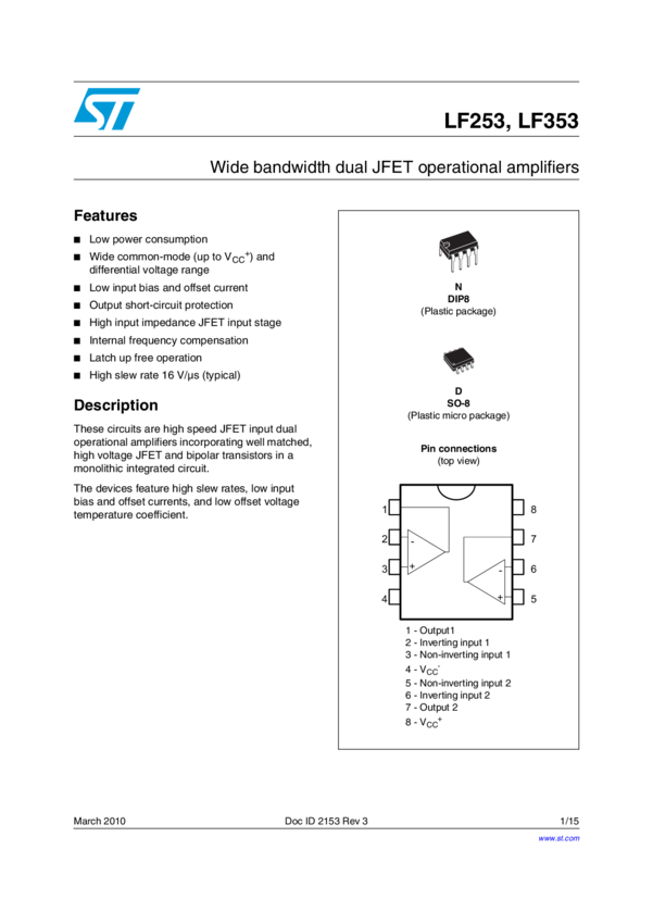 LF353DT OP Amp Dual GP ±18V 8-Pin SO N T/R