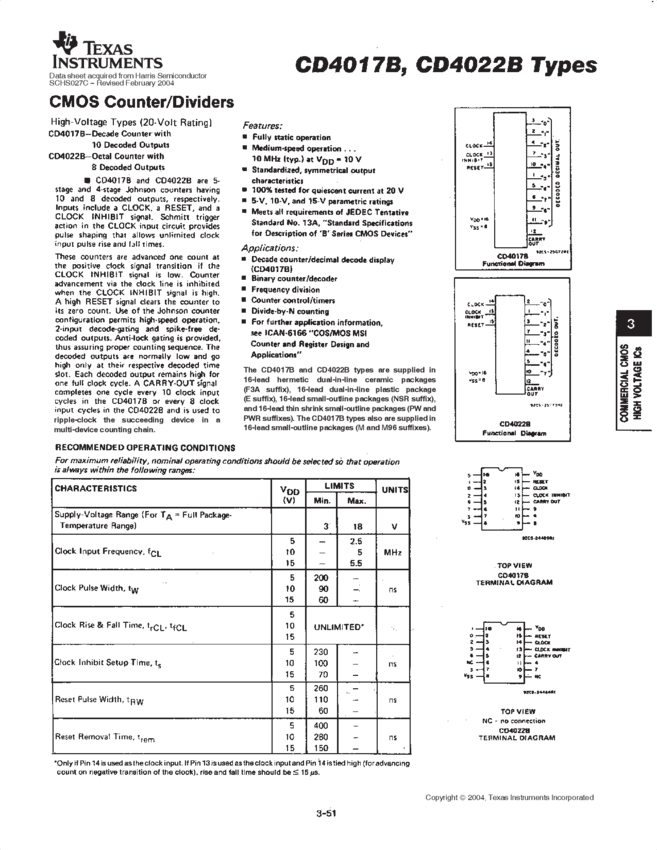 CD4022BE Counter/Divider Single 4-Bit Octal UP 16-Pin PDIP Tube