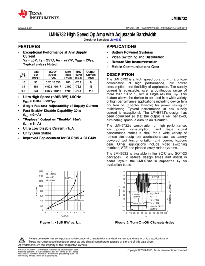 LMH6732MA/NOPB OP Amp Single Current Fdbk ±6V 8-Pin SOIC N Rail