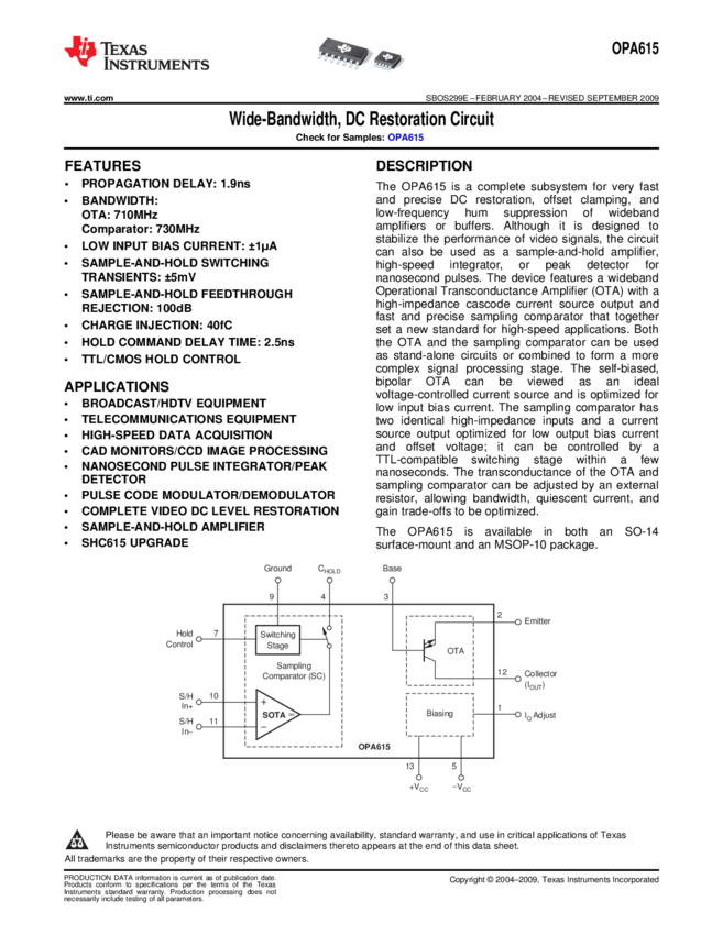 OPA615IDG4 OP Amp Single GP ±6.2V 14-Pin SOIC Tube