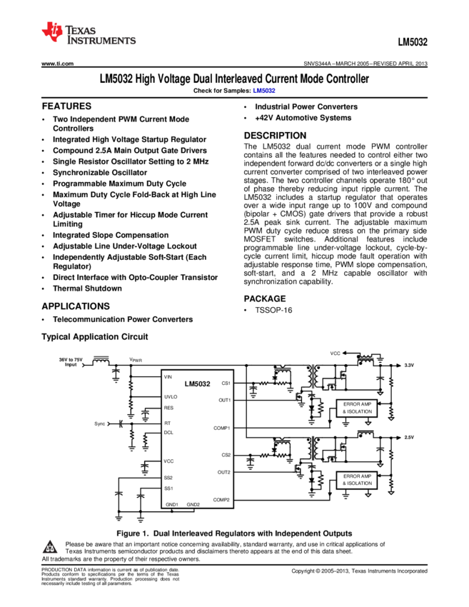 LM5032MTC Current Mode PWM Controller 2.5A 16-Pin TSSOP Rail