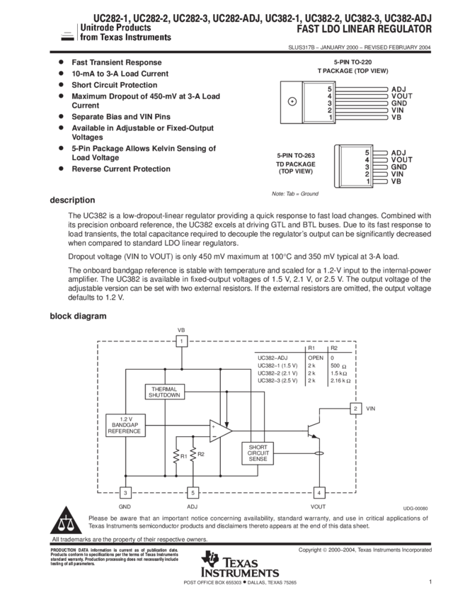 UC282TDTR-ADJG3, UC382T-2G3, UC282T-1G3, UC382T-3G3, UC282T-2G3, UC382TDTR-1G3