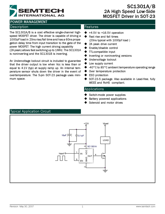 SC1301AISKTRT MOSFET DRVR 2A 1-OUT Lo Side Non-Inv 5-Pin SOT-23 T/R