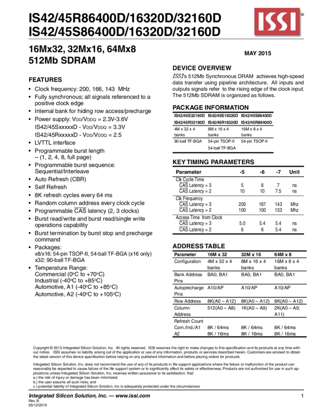 IS45S16320D-7CTLA1 DRAM Chip SDRAM 512M-Bit 32M x 16 3.3V 54-Pin TSOP-II