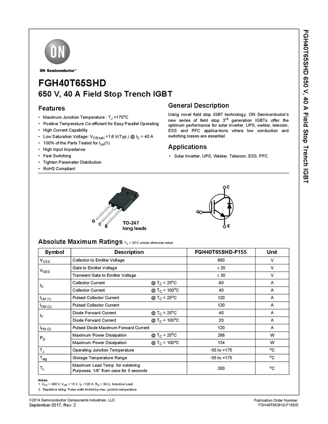 FGH40T65SHD 650 V, 40 A Field Stop Trench IGBT