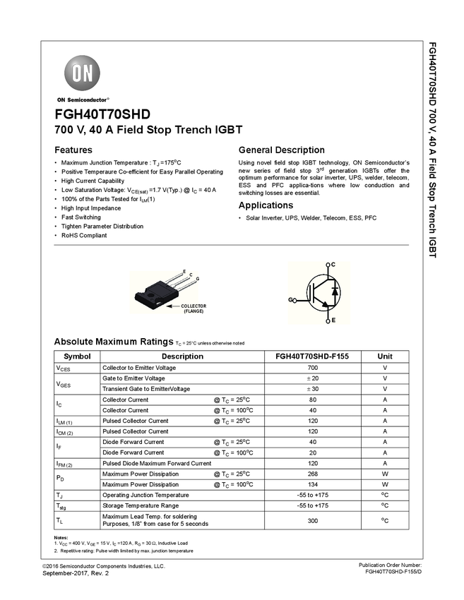 FGH40T70SHD 700 V, 40 A Field Stop Trench IGBT