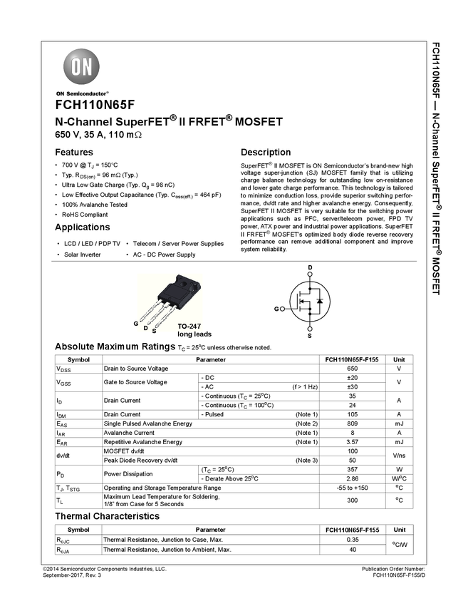 FCH110N65F N-Channel SuperFET® II FRFET®MOSFET