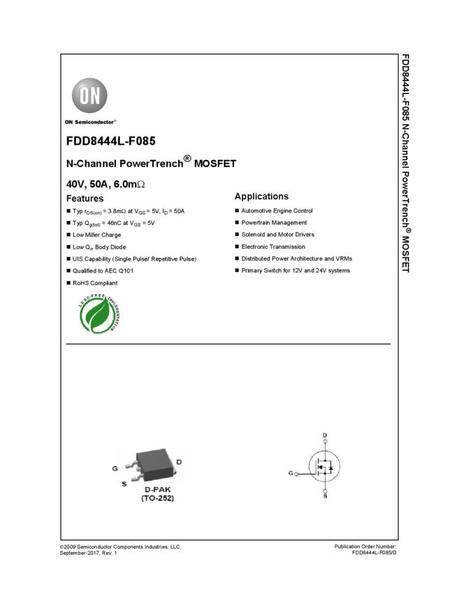 FDD8444L_F085 40V, 50A, 3.8mΩ, N-Channel PowerTrench®