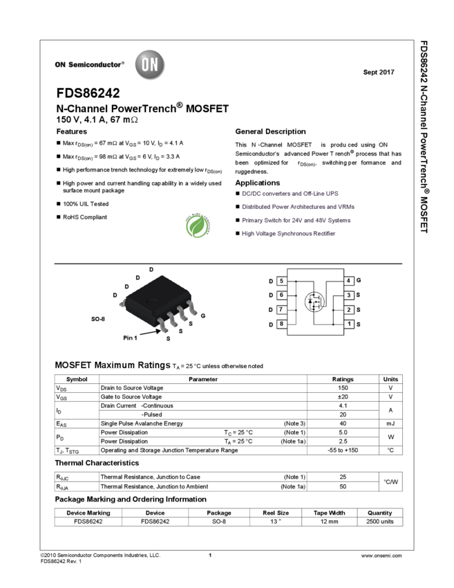 FDS86242 150V N-Channel PowerTrench® MOSFET
