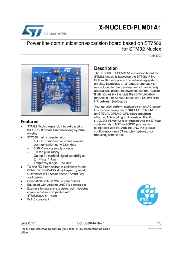 X-NUCLEO-PLM01A1 Power line communication expansion board based on ST7580 for STM32 Nucleo