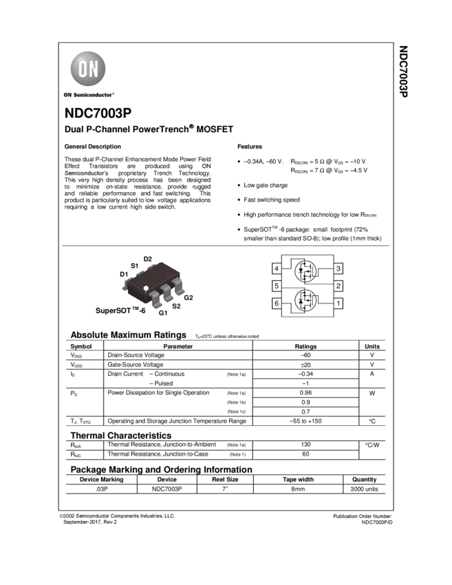 NDC7003P Dual P-Channel Enhancement Mode Field Effect Transistor
