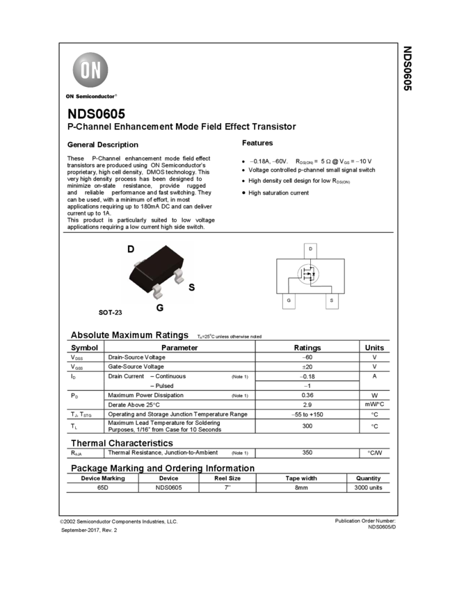 NDS0605 P-Channel Enhancement Mode Field Effect Transistor