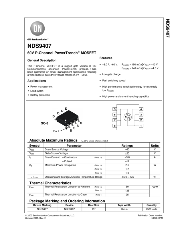 NDS9407 Single P-Channel PowerTrench® MOSFET